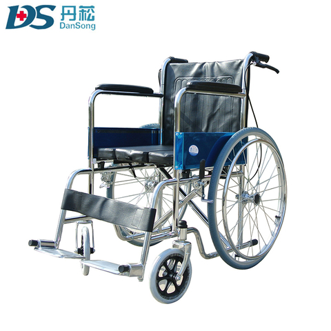 Gegalvaniseerd Stalen Frame Opvouwbaar Medisch Gebruik Handmatige Commode Rolstoel Voor Gehandicapten